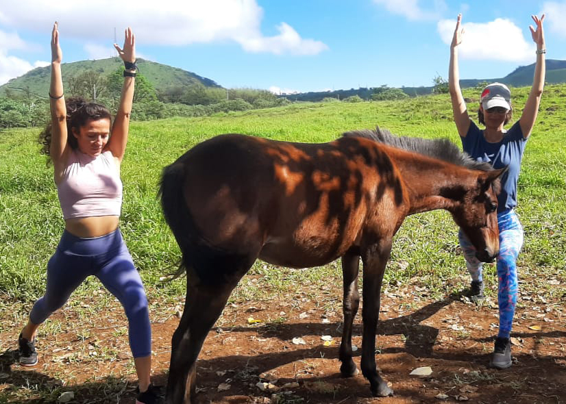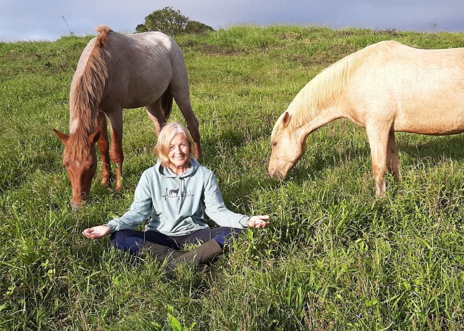 Am Abend: Yoga und eine Begegnung mit den Pferden bei Sonnenuntergang.